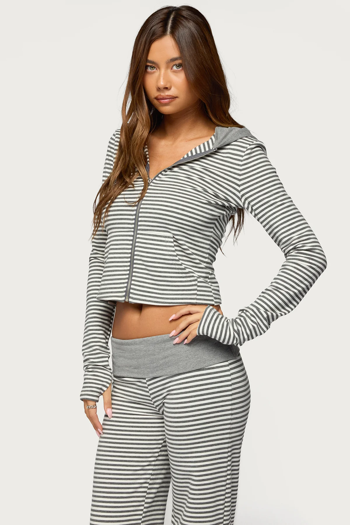 Meggy Striped Zip Up Hoodie
