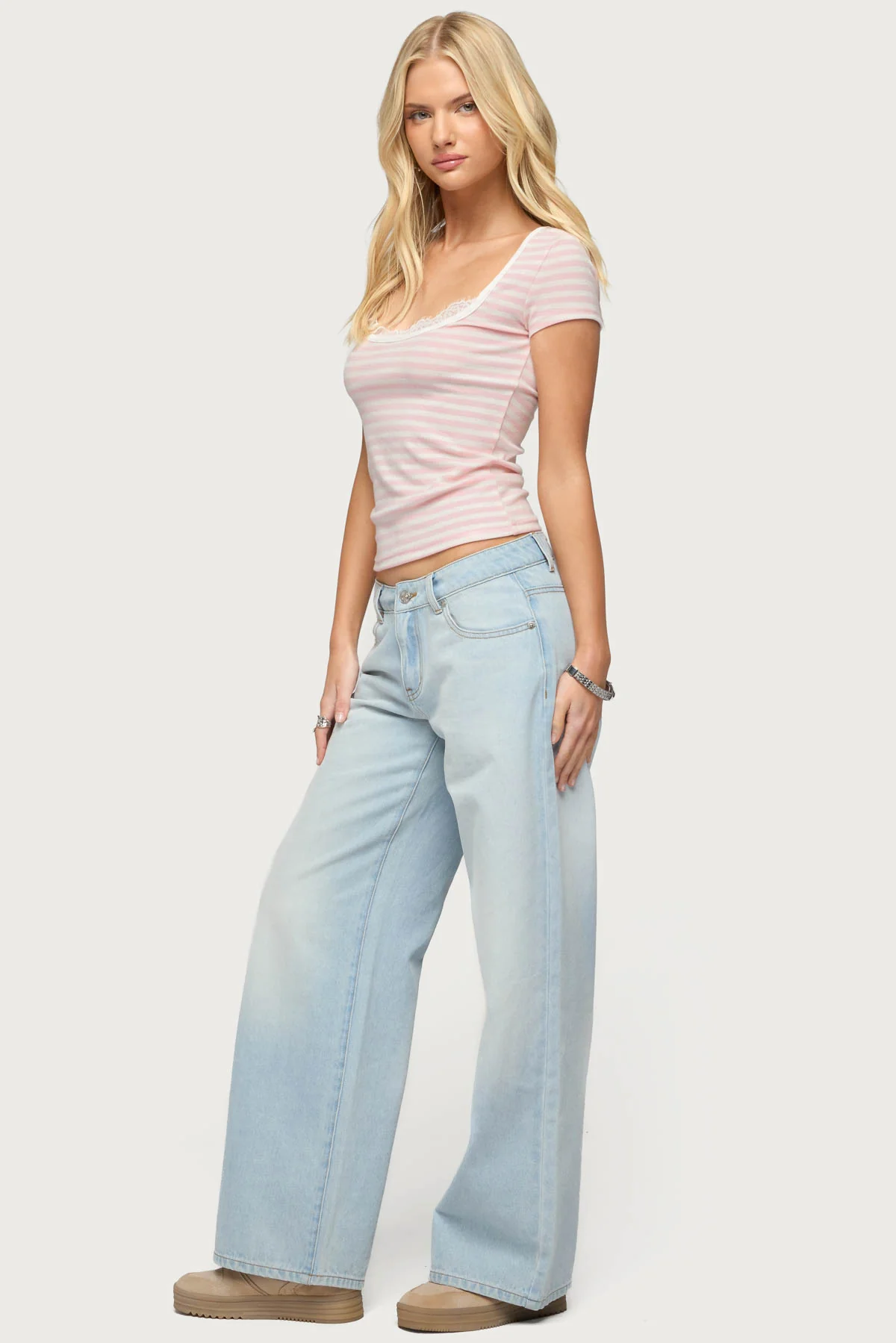 Layered Lacey Striped T Shirt